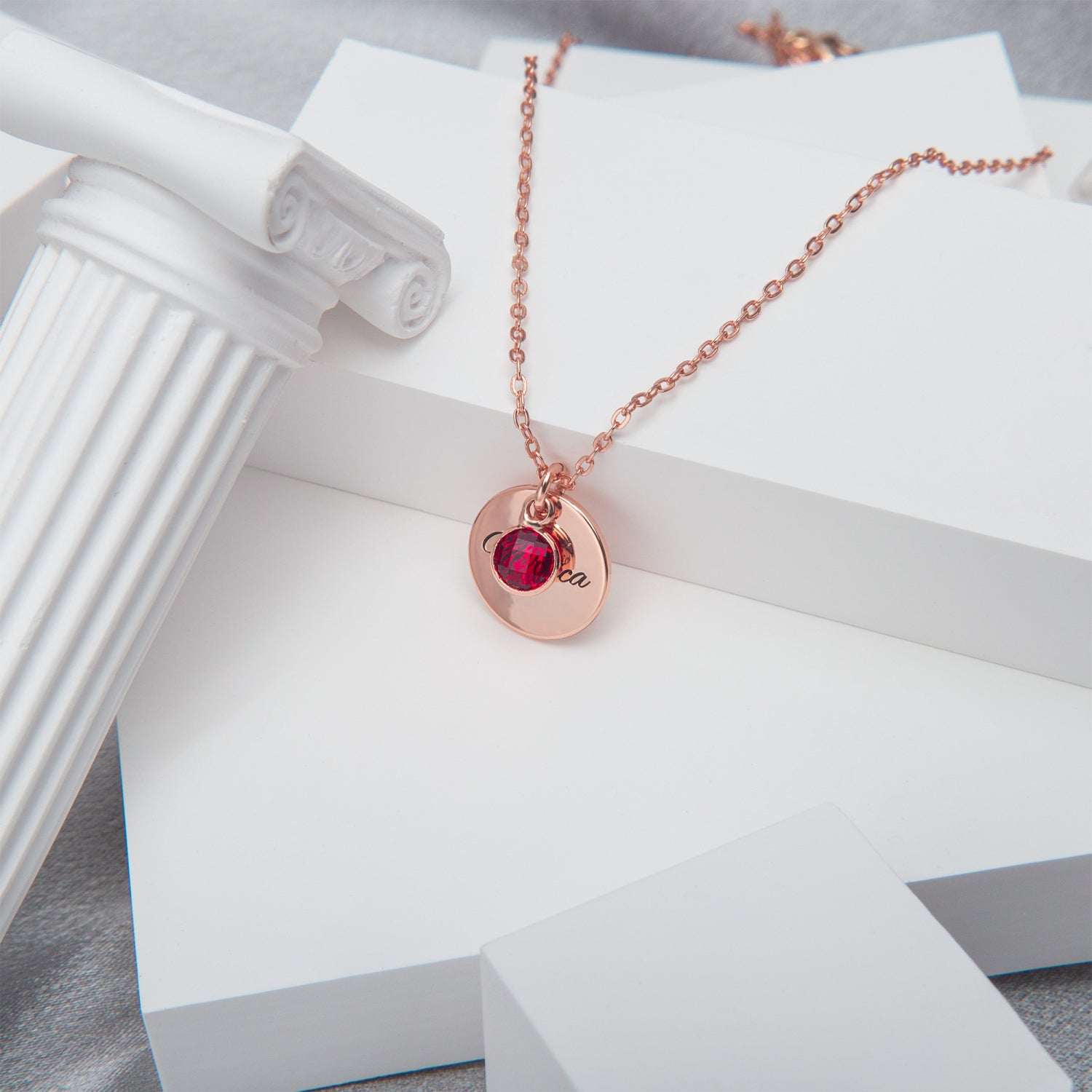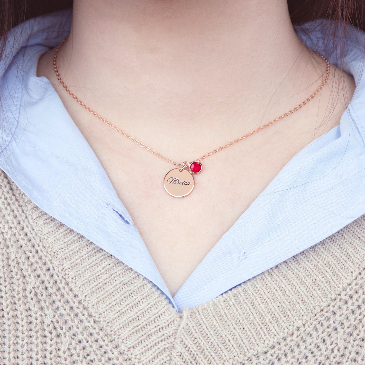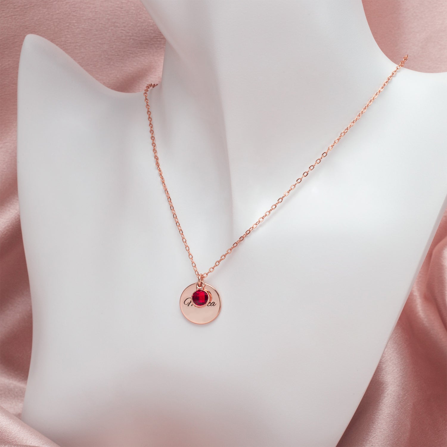 ✅ A delicate circle pendant with a birthstone of your choice.