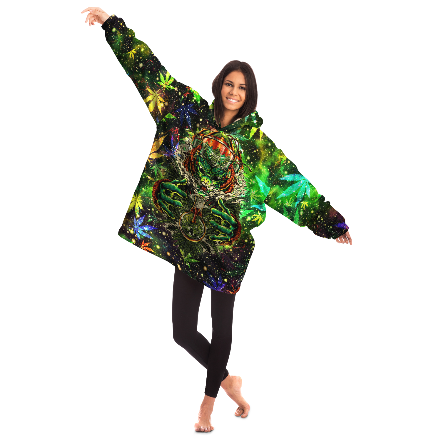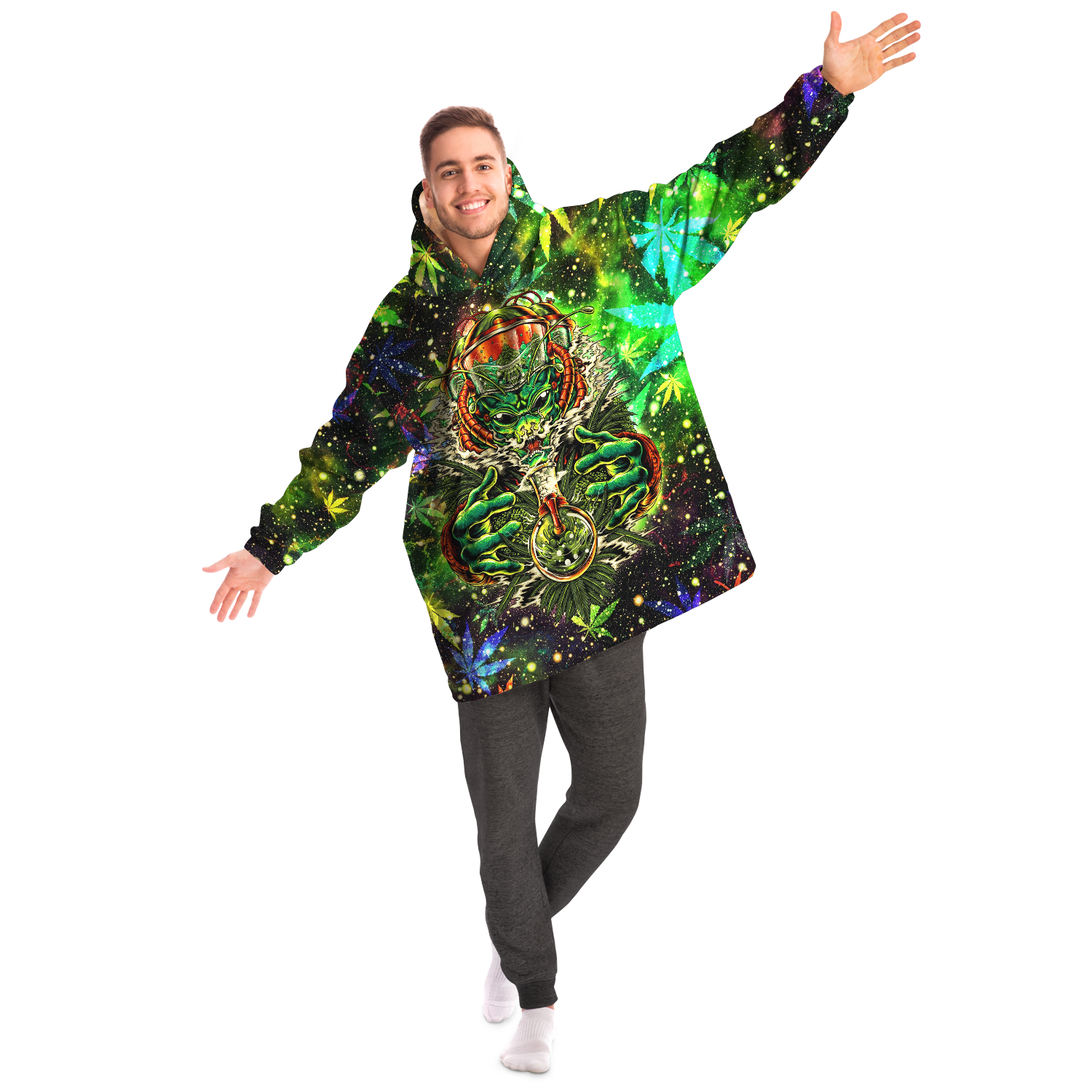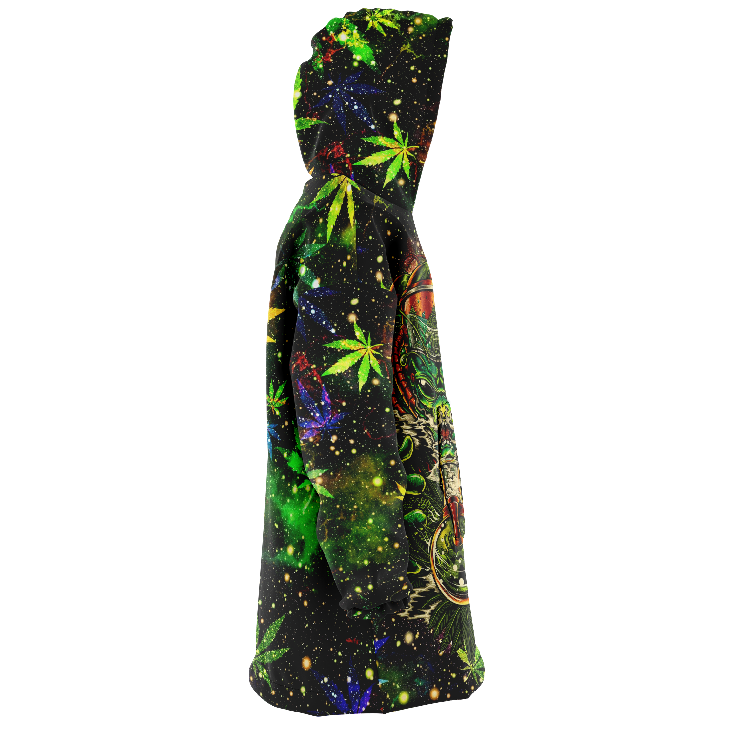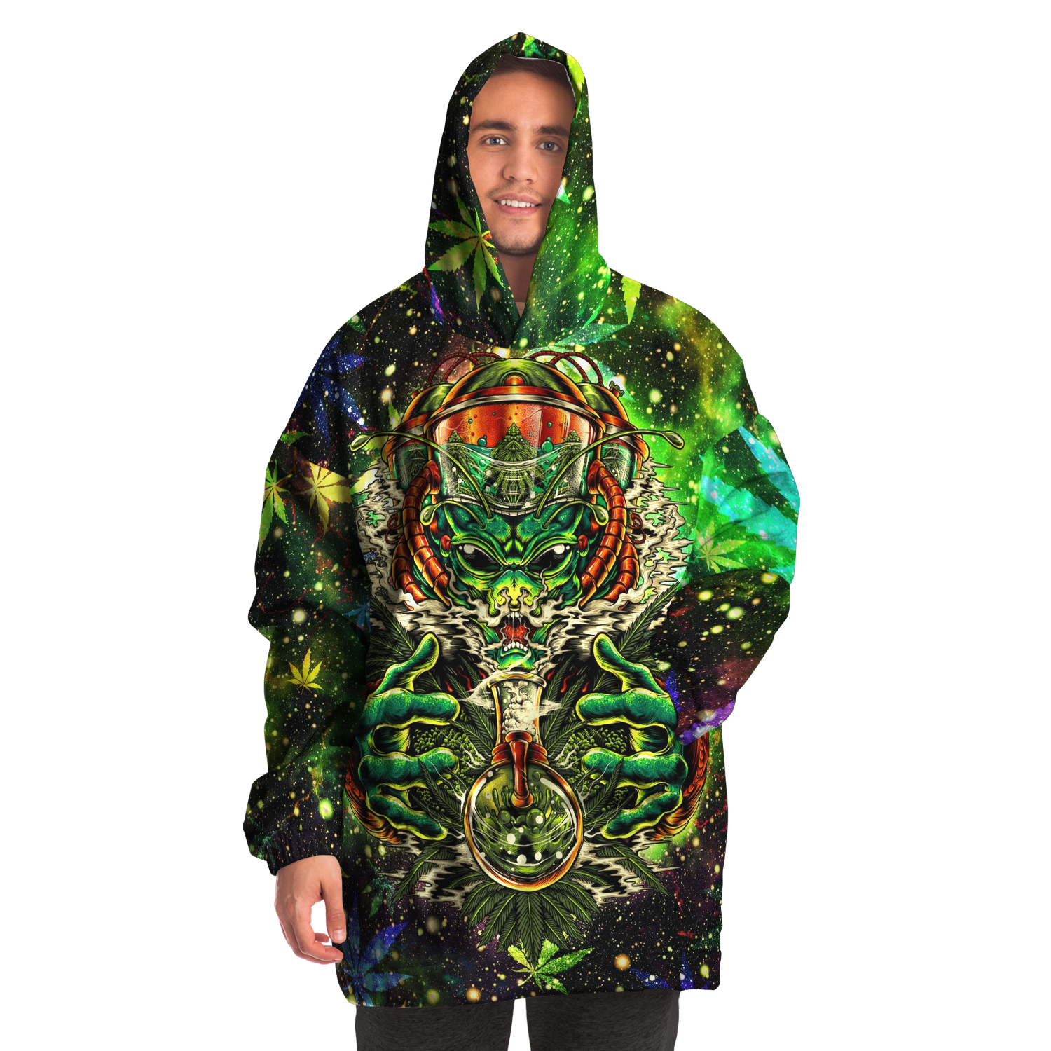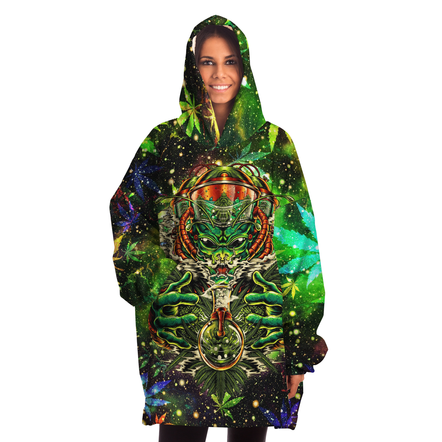A "Snug Hoodie" is a one-size fits all wearable blanket. This snug hoodie is crafted from an outer silky smooth micro-mink polyester face. And for the inside we have an ultra soft microfiber fleece lining. Each panel is individually printed, cut and sewn to ensure a flawless graphic with no imperfections.