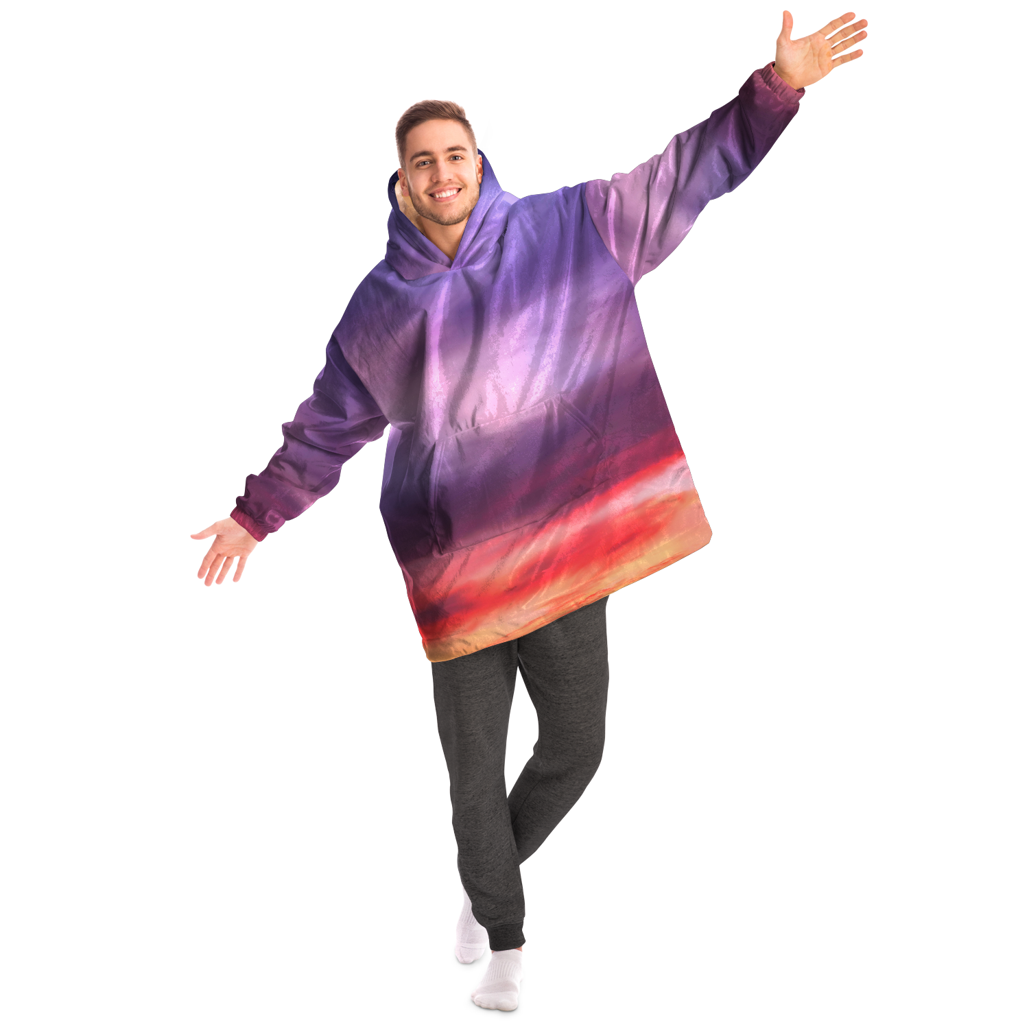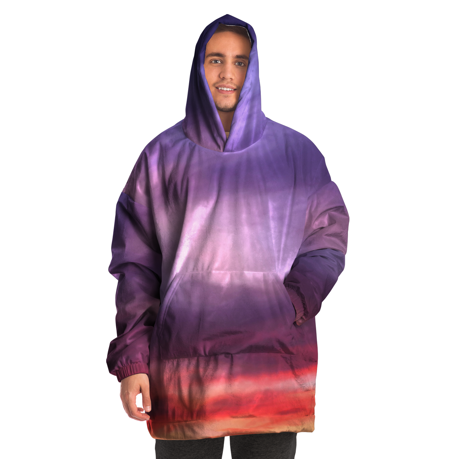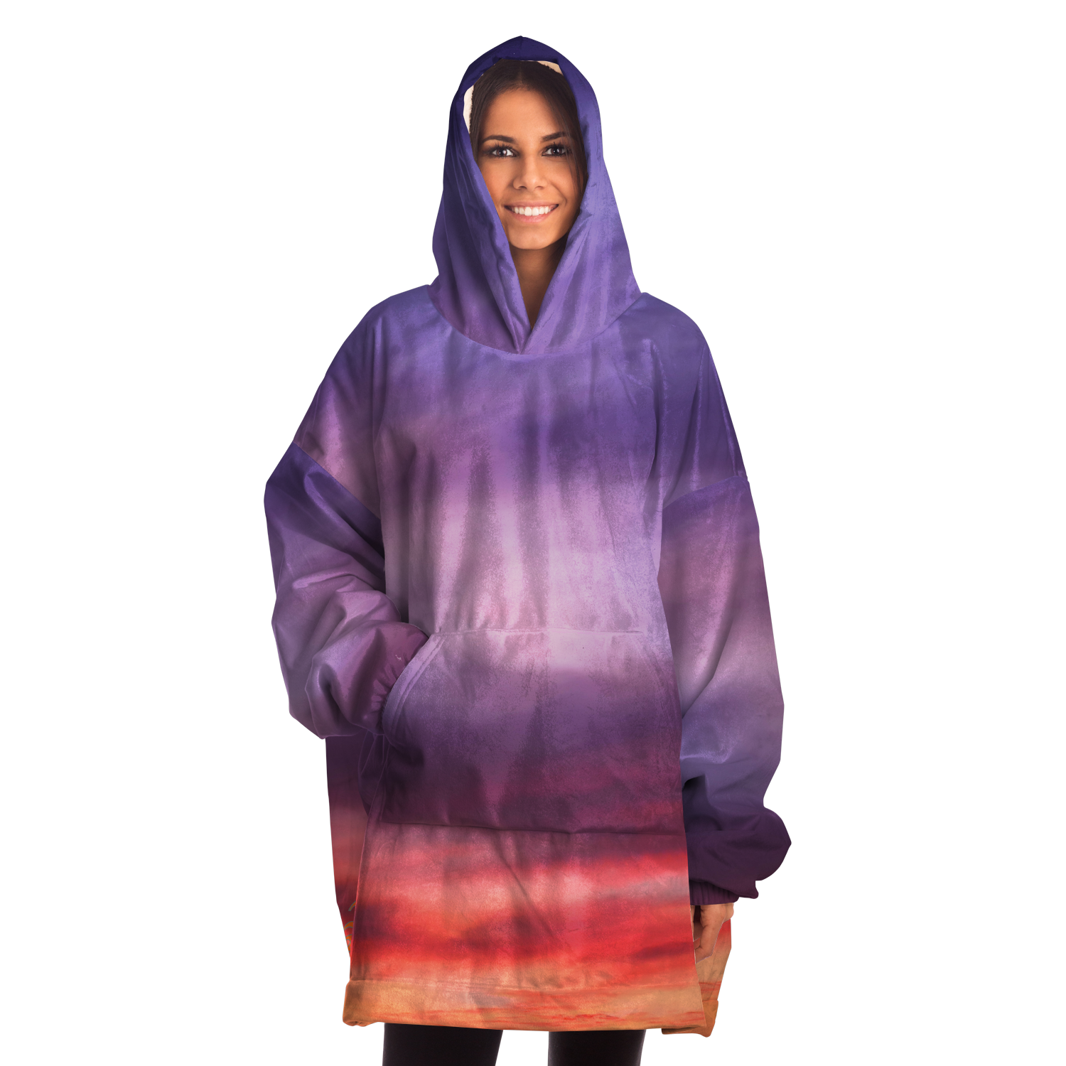 A "Snug Hoodie" is a one-size fits all wearable blanket. This snug hoodie is crafted from an outer silky smooth micro-mink polyester face. And for the inside we have an ultra soft microfiber fleece lining. Each panel is individually printed, cut and sewn to ensure a flawless graphic with no imperfections.